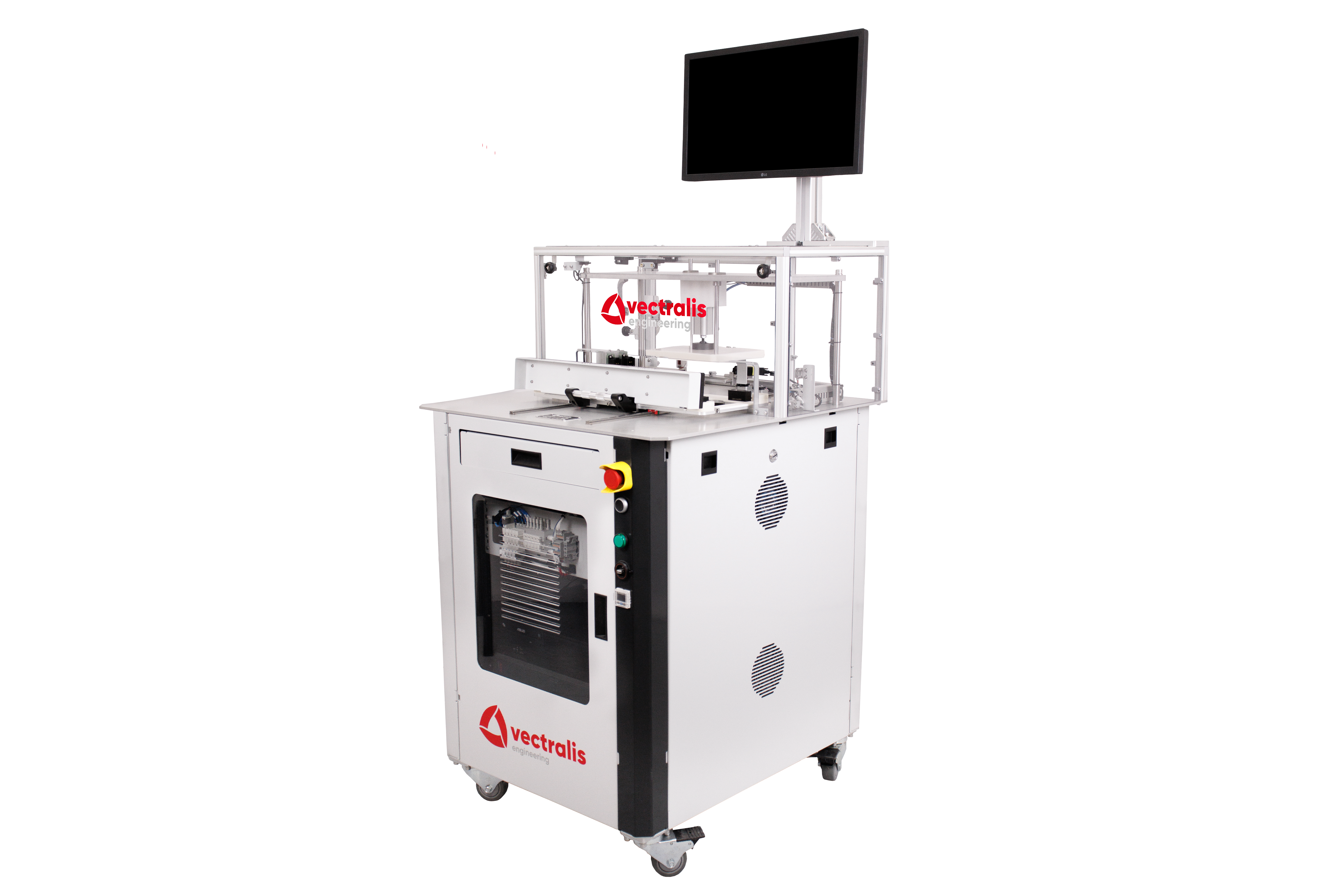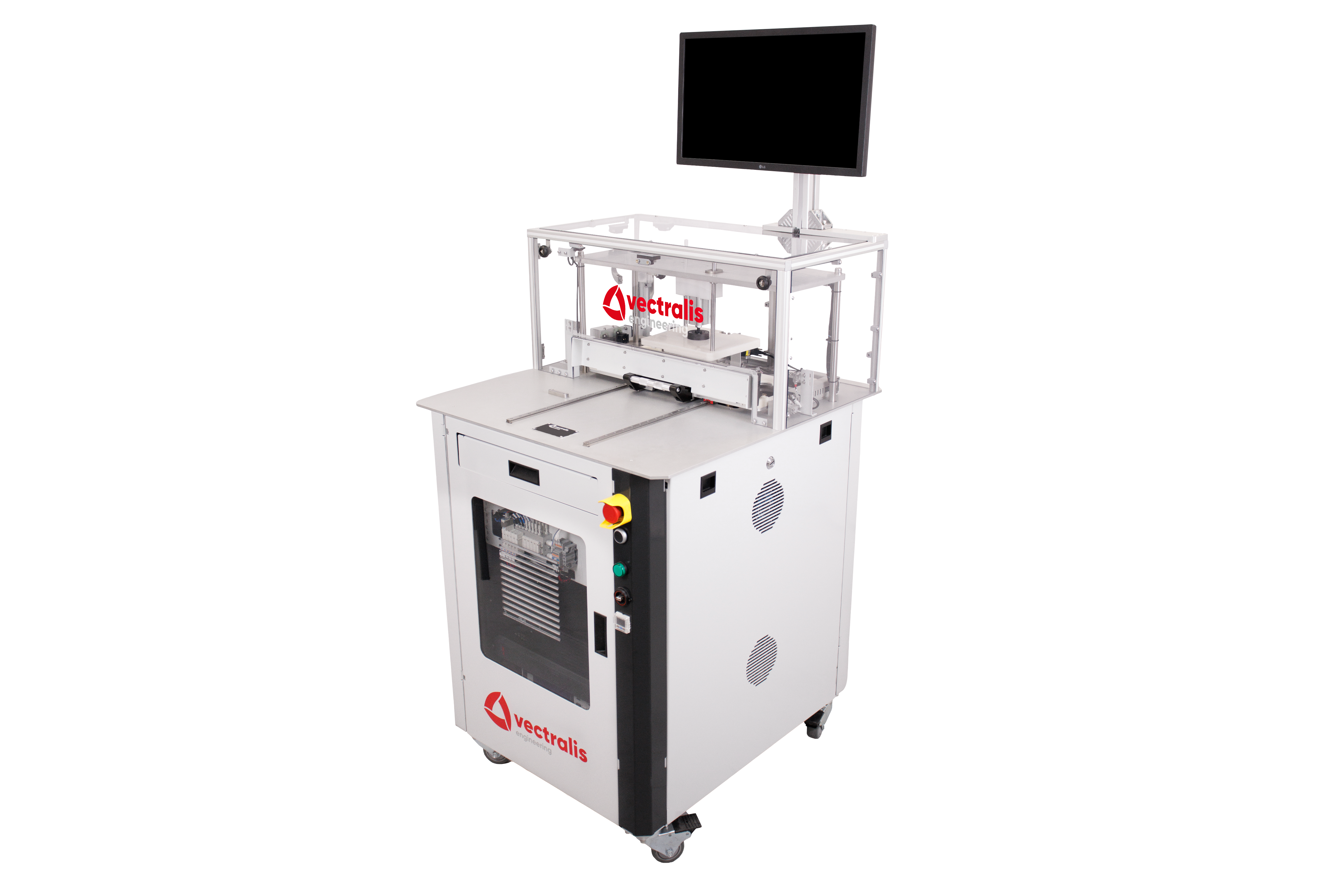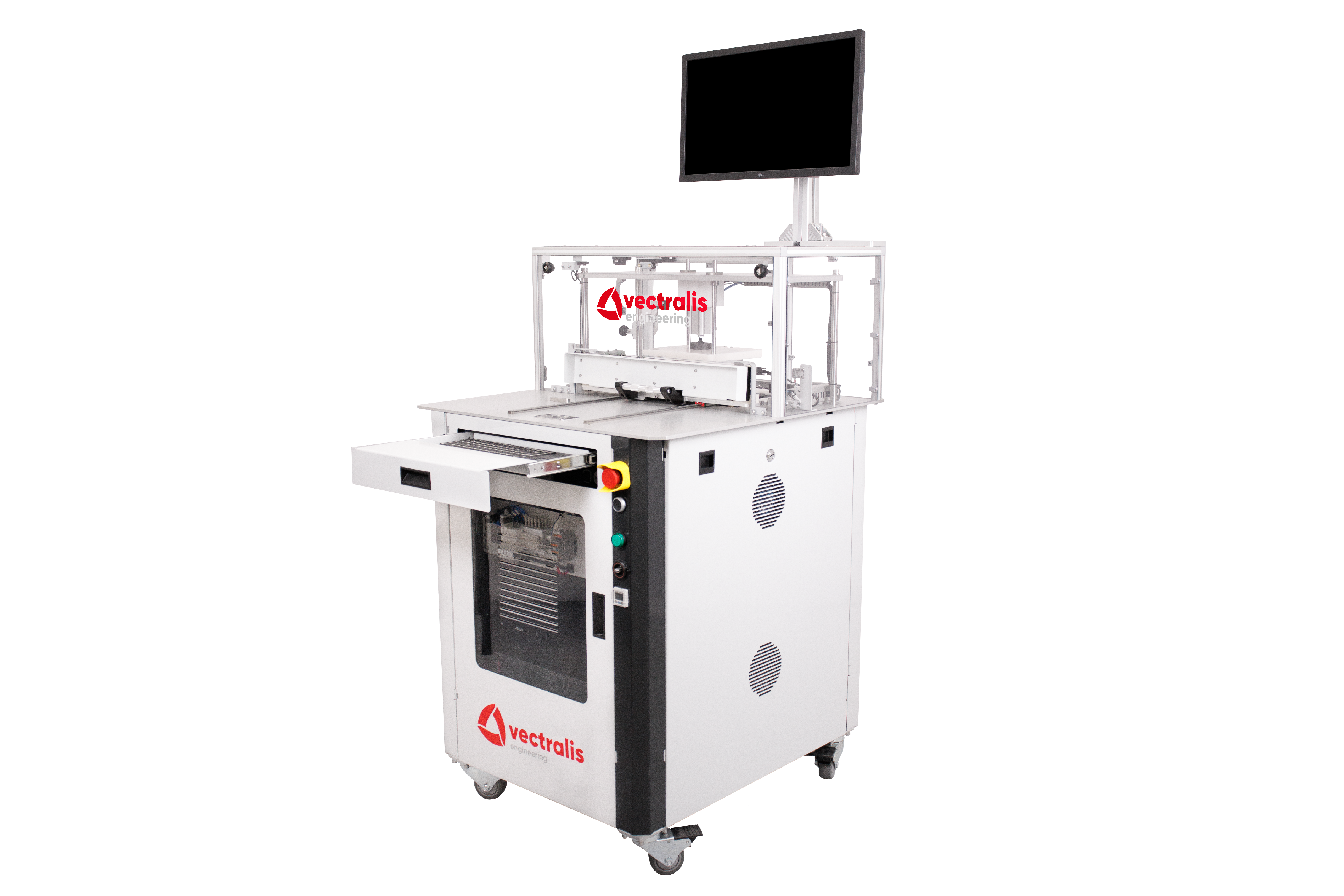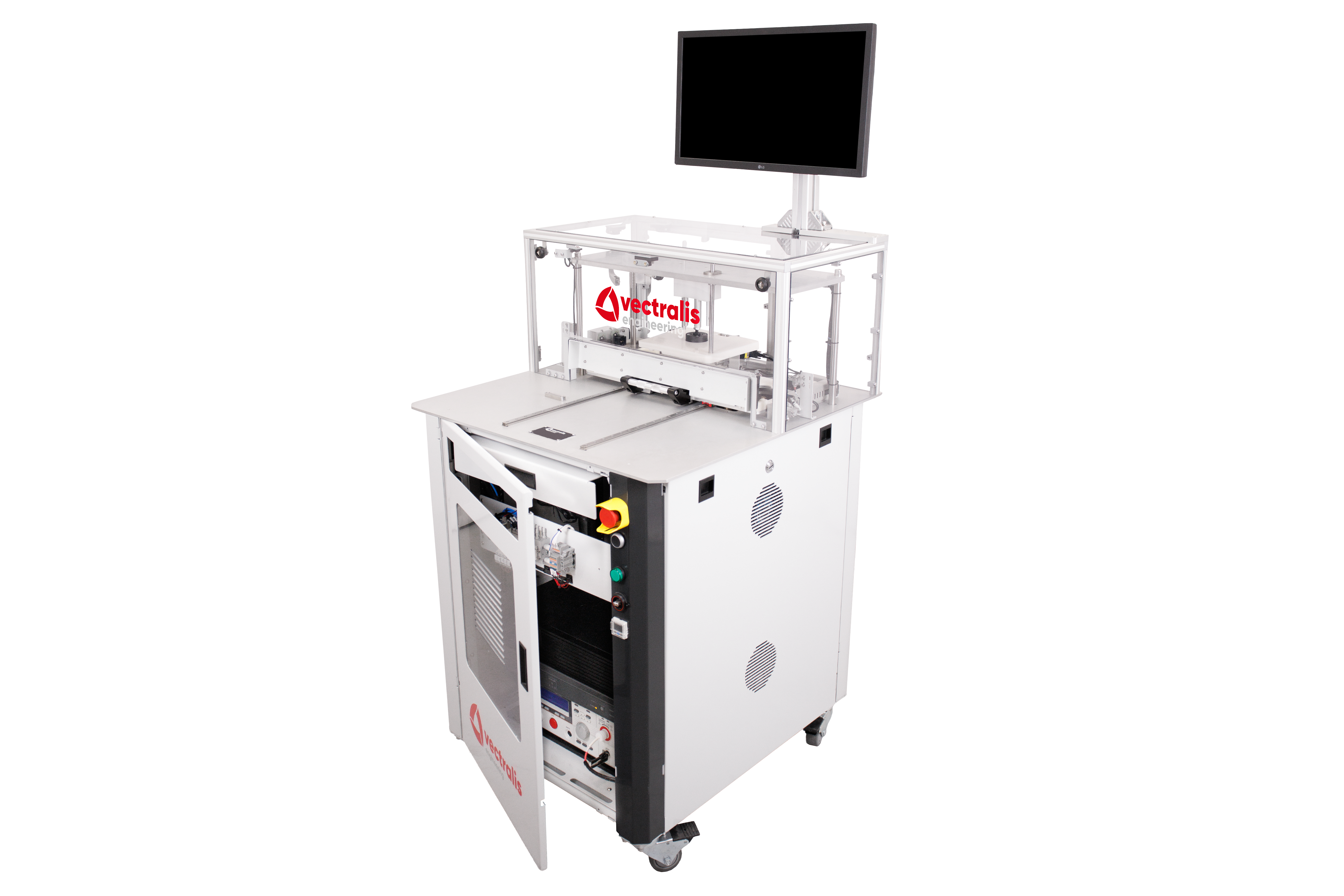 Vectralis automotive test station with extended keyboard tray for operator interface and test control